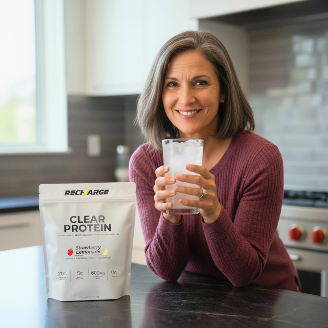 Clear Protein is different. It’s a light, refreshing drink that mixes instantly with water and combines protein for muscle strength, collagen for hair and skin, and electrolytes for hydration. The result is an easy, great-tasting way to get the protein your body needs without the heaviness of traditional shakes.